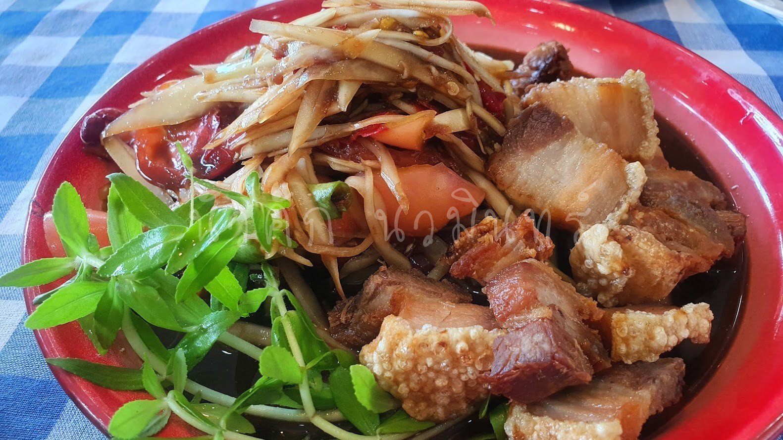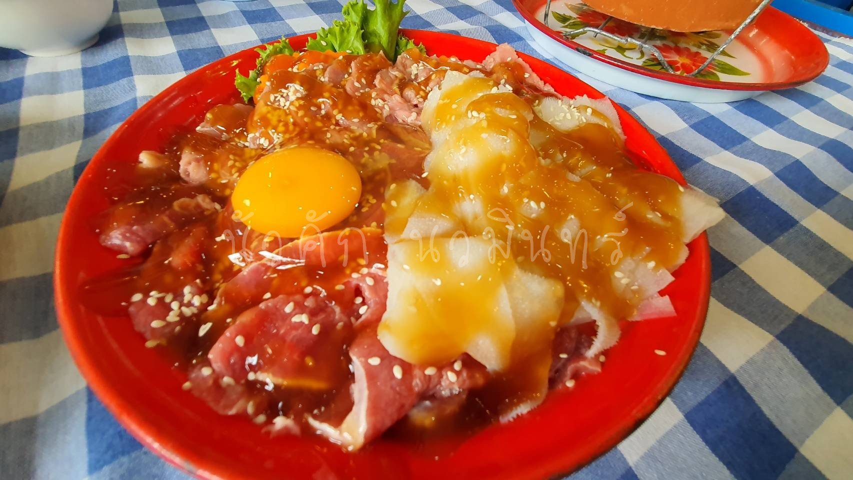 สำหรับอาหาร มีหลายเมนู ไม่ว่าจะเป็นส้มตำต่างๆ ปิ้ง ย่าง ทอด นึ่ง และอาหารตามสั่งอื่นๆ และที่อยากแนะนำให้ลองชิมสักครั้ง ก็คือ จิ้มจุ่ม น้ำจิ้มแซ่บมาก